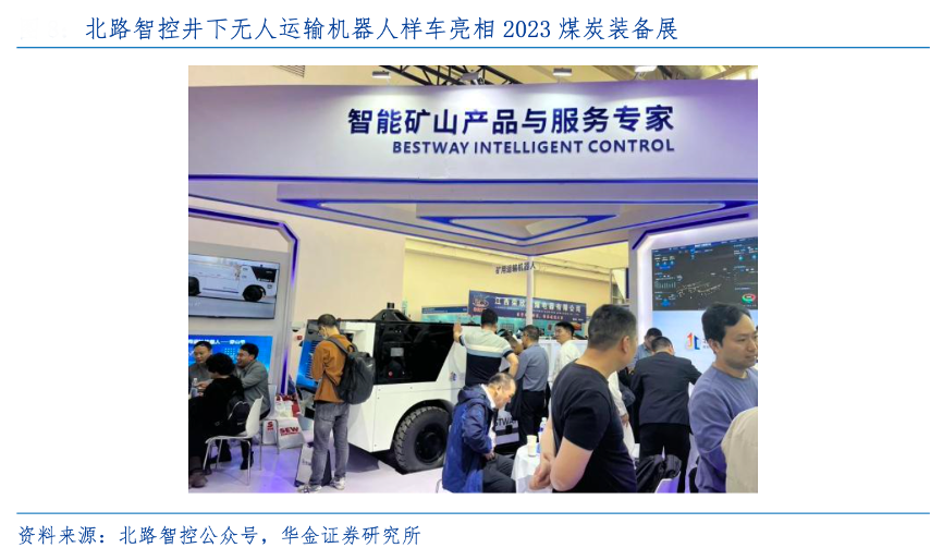 經(jīng)典案例:根據(jù)北路智控公眾號、華金證券研究所等綜合資訊表明,北路智控公司在 2023“第二十屆中國國際煤炭采礦技術(shù)交流及設備展覽會”亮相井下無人運輸機器人 “穿山甲”,該款運輸機器人深度融合 5G、數(shù)字建模、無線通信、UWB 精準定位、機器視覺、慣性導航等技術(shù),采用全時四驅(qū)、雙向行駛的獨特設計和智能操作系統(tǒng),實現(xiàn)對無衛(wèi)星導航、空間狹小、防爆要求高、工況復雜條件下的井下環(huán)境 360°全方位感知與障礙物識別。為了滿足礦方多 樣化的需求,穿山甲可自由切換遙控駕駛、遠程駕駛、自動駕駛等模式,按照預設的駕駛模式及 路線規(guī)劃,安全高效完成運輸任務。