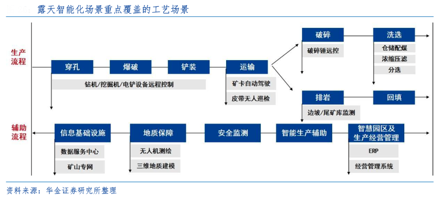 經(jīng)典案例:根據(jù)華金證券研究所等綜合資訊表明,北路智控針對露天煤礦,重點提升礦井網(wǎng)絡、數(shù)據(jù)中心、感知系統(tǒng)建設,重點建設遠程操控系統(tǒng)、無人駕駛系統(tǒng)、遠程運維系統(tǒng)等,實現(xiàn)開采環(huán)境數(shù)字化、采掘裝備智能化、生產(chǎn)過程遙控化、信息傳輸網(wǎng)絡化和經(jīng)營管理信息化。