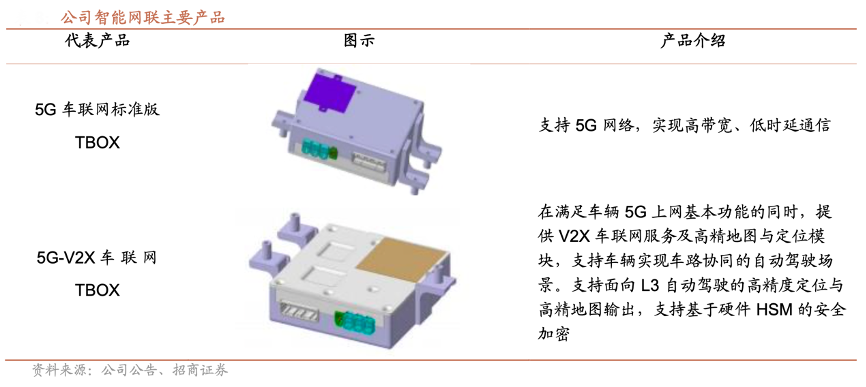 經(jīng)典案例:根據(jù)公司公告、招商證券等綜合資訊表明,在智能網(wǎng)聯(lián)方面,均勝電子公司車路協(xié)同 5G-V2X 技術(shù)已于 2021 年 5 月搭載于高合 HIPHIX 量 產(chǎn)落地,成為全球首批搭載該技術(shù)的量產(chǎn)案例。公司最新一代的智能網(wǎng)聯(lián)產(chǎn)品 已經(jīng)能夠滿足最新的 3GPP-R16 標(biāo)準(zhǔn),融合多場景 C-V2X 車路協(xié)同,亞米級高 精定位,全球?qū)Ш叫l(wèi)星系統(tǒng)(GNSS),智能藍(lán)牙鑰匙,OTA 升級,大數(shù)據(jù)服務(wù)和安全服務(wù)等多種功能,并且能夠符合歐洲相關(guān)法規(guī)行業(yè)標(biāo)準(zhǔn)。