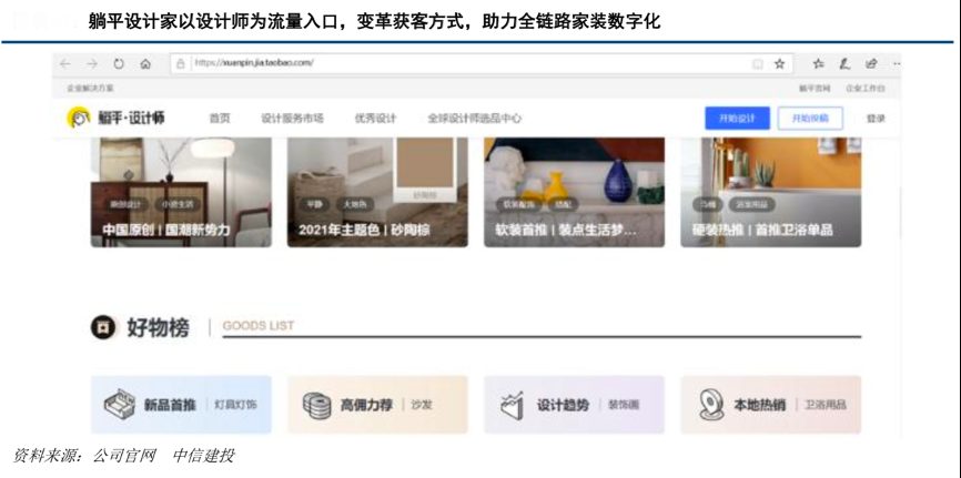 經(jīng)典案例:根據(jù)公司官網(wǎng)、中信建投等綜合資訊表明,作為居然之家與阿里巴 巴共同投資打造的家裝家居數(shù)字化設(shè)計(jì)平臺(tái),躺平設(shè)計(jì)家以 3D 化設(shè)計(jì)工具的研發(fā)為核心,為家居設(shè)計(jì)師和家居企業(yè)提供免費(fèi)專(zhuān)業(yè)工具和渲染服務(wù),同時(shí)依托阿里巴巴電商生態(tài),幫助設(shè)計(jì)師和企業(yè)打通設(shè)計(jì)與商品全鏈路,為消費(fèi)者提供“所見(jiàn)即所得”的設(shè)計(jì)方案,推動(dòng)家居設(shè)計(jì)全流程數(shù)字化。目前,累計(jì)全球注冊(cè)設(shè)計(jì)師達(dá)到 1000 萬(wàn)人,真實(shí)商品模型數(shù)量達(dá)到 100 萬(wàn)件,全國(guó)戶(hù)型圖庫(kù)達(dá)到 280 萬(wàn)。