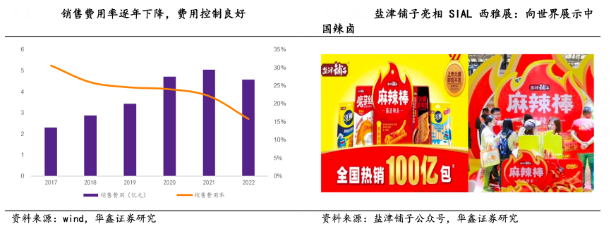 經(jīng)典案例:根據(jù)wind、鹽津鋪?zhàn)?、華鑫證券研究等綜合資訊表明,鹽津鋪?zhàn)庸緦⒕€上電商作為品牌推廣的重要渠道,自 2020 年開始,線上電商聚焦 “大單品戰(zhàn)略”,線上線下協(xié)同,共同復(fù)利大單品,在各個(gè)細(xì)分品類形成領(lǐng)導(dǎo)品牌心智。近期,公司亮相 SIAL 西雅展展示辣味賽道的鹽津鋪?zhàn)拥钠放屏唾?gòu)買力。