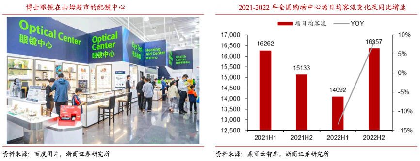 經(jīng)典案例:根據(jù)百度圖片、贏商云智庫、浙商證券研究所等綜合資訊表明,博士眼鏡公司與山姆超市進行獨家合作, 截至2022上半年在國內(nèi)所有山姆超市布局了 38 家配鏡中心,并將在未來進一步深化與大型商超的渠道合作:1)大型商超選址能力強,有豐富的客群流量;2)商超渠道的客群流量與公司門店的目標(biāo)客群高度契合,有助于實現(xiàn)流量轉(zhuǎn)化,商超門店創(chuàng)收能力更強。