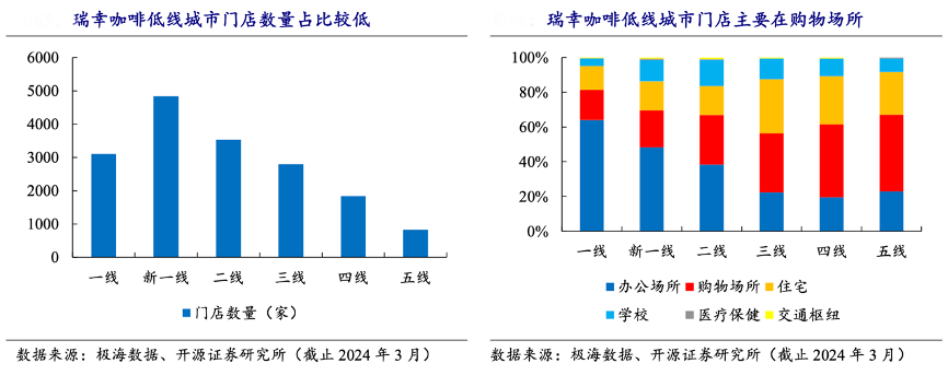 經(jīng)典案例:根據(jù)極海數(shù)據(jù)、開源證券研究所等綜合資訊表明,在一線和二線城市中,由于人均消費水平較高,居民對于咖啡的偏好度和接受度更好,城市門店密度基本在 2-5 萬人/店,不同城市間門店密度差異性較小。而低線城市由于區(qū)域和經(jīng)濟(jì)不同,導(dǎo)致門店密度差異性較大,部分低線城市門店密度僅為 20-30 萬人/家。