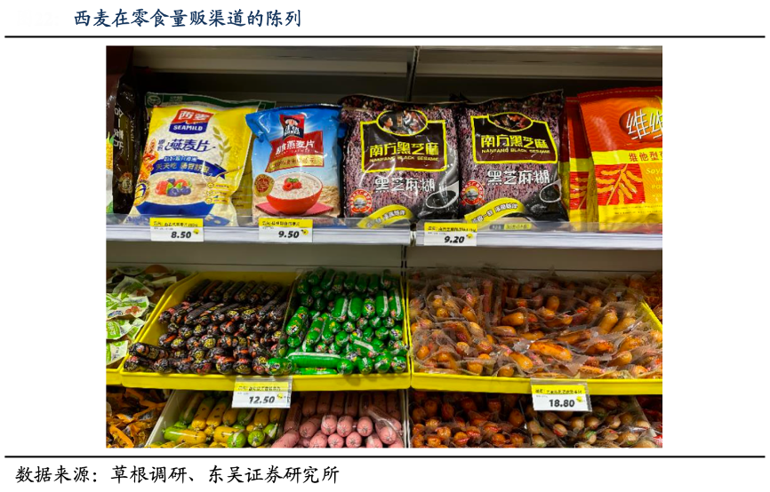 經(jīng)典案例:根據(jù)草根調(diào)研、東吳證券研究所等綜合資訊表明,西麥?zhǔn)称贩e極布局零食量販渠道,與國內(nèi)各量販品牌均展開合作,2023年公司在線下零食渠道同比增長超過180%,零食量販渠道的快速發(fā)展驅(qū)動(dòng)公司線下業(yè)務(wù)新增量。