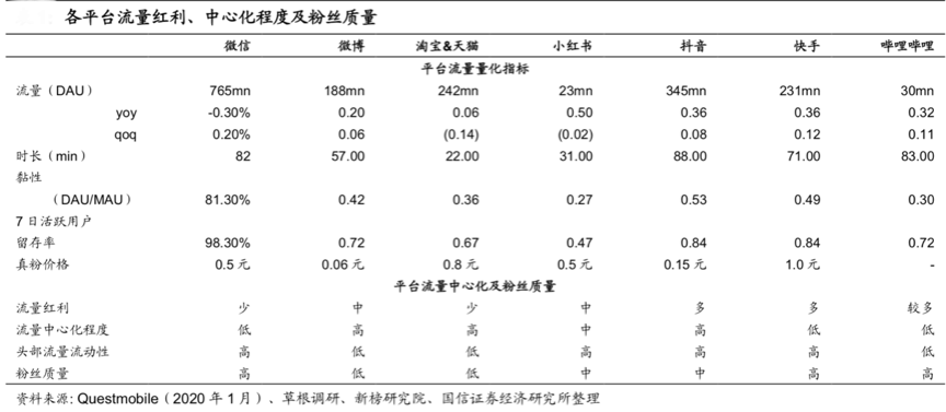 建立健全“品牌私域流量體系”需要企業(yè)深度洞察互聯(lián)網(wǎng)平臺競爭動態(tài),放大各平臺流量紅利,視其流量紅利、中心化程度及粉絲質(zhì)量重構(gòu)“品牌經(jīng)營邏輯”,需要更加重視抖音、快手等崛起新力量,同時強化淘寶天貓等基礎商業(yè)交易陣地,持續(xù)放大“微信主陣地”價值。根據(jù)Questmobile、草根調(diào)研、新榜研究院和國信證券研究所等綜合資訊表明,從日活用戶數(shù)角度看,微信一家獨大,其次是抖音,在之后淘寶 &天貓、快手、微博相差不多,嗶哩嗶哩與小紅書則更加垂直。