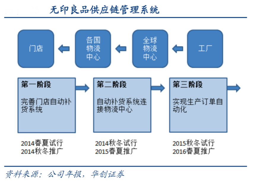 經(jīng)典案例:根據(jù)無印良品官網(wǎng)等綜合資訊表明,其建立“可視化”供應(yīng)鏈系統(tǒng),以日本作為全球總部,全球的物流數(shù)據(jù)都可以被總部追蹤查看,實(shí)現(xiàn)對(duì)產(chǎn)品標(biāo)簽、質(zhì)量、規(guī)格的統(tǒng)一管理。