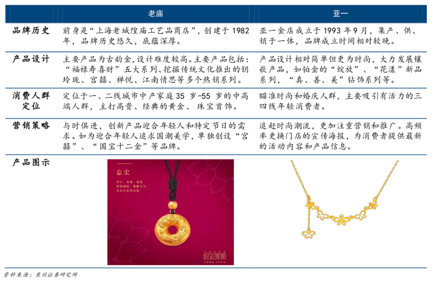 經(jīng)典案例:根據(jù)東興證券研究所等綜合資訊表明,豫園商城擁有老廟和亞一兩大核心黃金珠寶品牌,老廟主打高端珠寶品牌,新產(chǎn)品系列古韻金,單價和設(shè)計難度均較高,聚焦于一二線城市,以長三角 及江蘇、安徽、山東等鄰近省份為核心布局區(qū)域。而亞一主打中低線市場,產(chǎn)品單價在 2000-4000 元左右, 以“降維不降級”策略聚焦于三、四、五線城市,雙品牌布局差異化搶占“顧客心智”,推動品牌的迅猛發(fā)展。