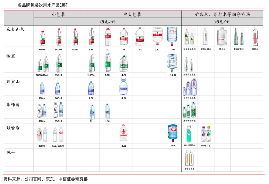 經(jīng)典案例:根據(jù)公司官網(wǎng)、京東及中信證券研究部等綜合資訊表明,農(nóng)夫山泉以“天然水源”為基礎(chǔ),鉚定消費(fèi)者最為關(guān)心的“天然、健康”概念,打造天然水概念;在消費(fèi)者對(duì)于包裝飲用水健康仍不甚了解之時(shí)不斷向消費(fèi)者傳遞水知識(shí)和飲水健康理念,形成較強(qiáng)的品牌認(rèn)知。