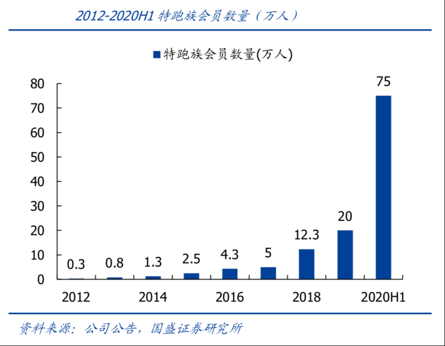 經(jīng)典案例:根據(jù)公司公告、國盛證券研究所等綜合資訊表明, 2012-2021H1特跑族會員數(shù)量持續(xù)增長,2021H1達75萬人,特步跑步俱樂部以特跑族會員需求為出發(fā)點,有力增強了用戶粘 性和用戶忠誠度,同時,跑步俱樂部作為“跑者之家”,將城市各地的跑步愛好者聚集起來,營造專業(yè)運動的氛圍,更好的傳遞品牌形象。