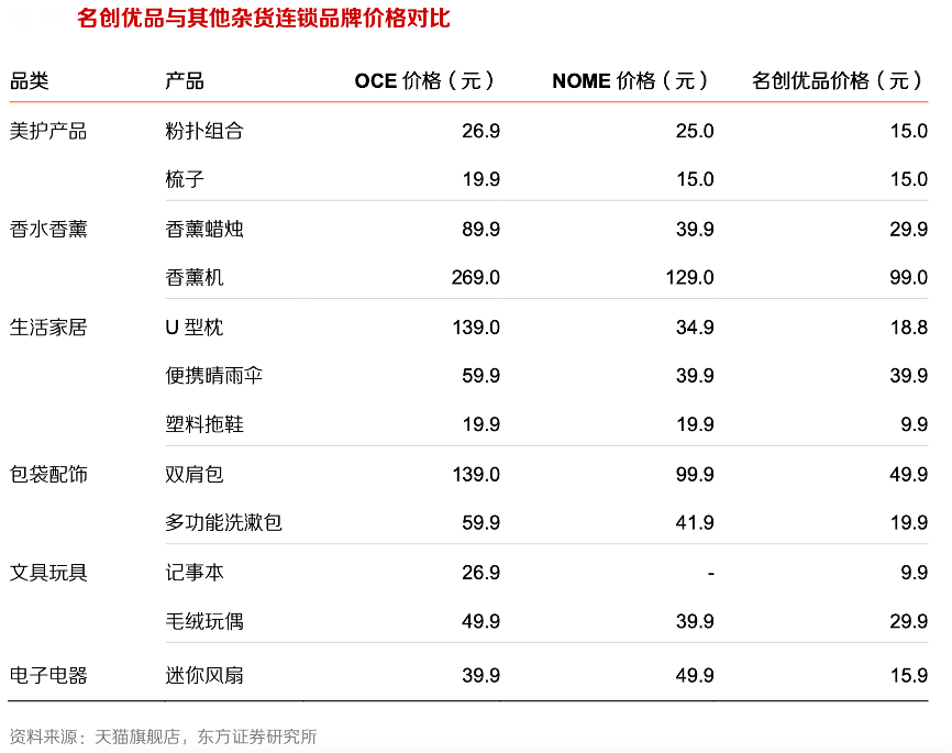 經(jīng)典案例:根據(jù)天貓旗艦店、東方證券研究所等綜合資訊表明,名創(chuàng)優(yōu)品主打極致性價比的產(chǎn)品,95%以上產(chǎn)品單價低于 50 元,同一品類商品價格約為市價的1/3,對于公司核心客群極具吸引力。其始終堅持“三低三高”的經(jīng)營策略:高品質(zhì)、高顏值、高頻率;低成本、低加價、低價格。高品質(zhì)的保證來源于嚴選供應商和嚴格品控措施,國內(nèi)成熟的供應鏈體系保障實現(xiàn)低廉的生產(chǎn)成本,公司內(nèi)部則從設(shè)計、原材料、樣品到銷售產(chǎn)品全生命周期進行品質(zhì)監(jiān)控。