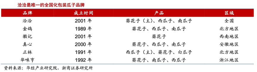 經(jīng)典案例:根據(jù)華經(jīng)產(chǎn)業(yè)研究院、浙商證券研究所等綜合資訊表明,相較于堅(jiān)果炒貨整體市場(chǎng)的快速擴(kuò)張,瓜子市場(chǎng)發(fā)展趨于成熟。從供需角度來(lái)看,2009 年后我國(guó)食用葵花籽消費(fèi)量相對(duì)穩(wěn)定,2014-2020 年都穩(wěn)定在 100 萬(wàn)噸左右;競(jìng)爭(zhēng)格局則呈現(xiàn)“1+N”模式,全國(guó)化品牌僅有洽洽一家,其他多為區(qū)域性品牌,根據(jù)中國(guó)食品工業(yè)協(xié)會(huì)的數(shù)據(jù),2019 年洽洽食品在包裝流通瓜子中占比 54%。