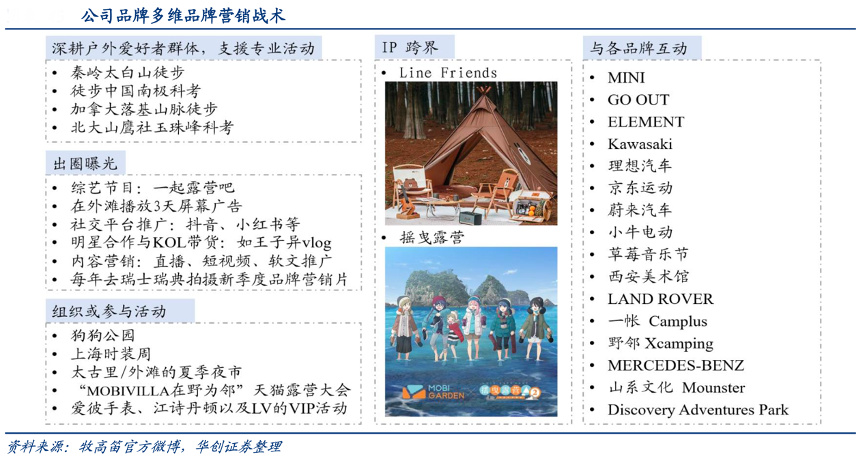 經(jīng)典案例:根據(jù)牧高笛官方微博、華創(chuàng)證券等綜合資訊表明,除帳篷的迭代升級(jí)以外,牧高笛公司同時(shí)不斷擴(kuò)展周邊產(chǎn)品,圍繞精致露營(yíng),開發(fā)睡眠系統(tǒng)、廚房系統(tǒng)、收納系統(tǒng)、客廳系統(tǒng)的產(chǎn)品矩陣,打造高海拔、精致徒步、精致露營(yíng)、精致野餐場(chǎng)景矩陣,使牧高笛成為品類齊全的精致露營(yíng)生活方式品牌。