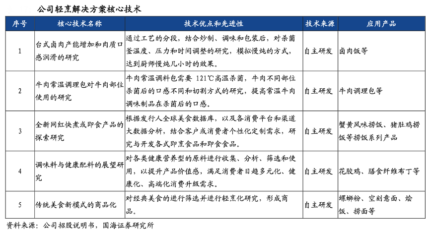 經(jīng)典案例:根據(jù)公司招股說明書、國海證券研究所等綜合資訊表明,空刻意面采用進口意大利面,由寶立食品提供輕烹料理醬包、歐芹撒粉和蒜香油包等輕烹解決方案產(chǎn)品,并委托無問西東提供組裝倉儲等服務(wù)。寶立食品在解決方案的技術(shù)實力幫助空刻意面在互聯(lián)網(wǎng)眾多速食輕烹產(chǎn)品中脫穎而出。2021 年 3 月,公司收購廚房阿芬75%股權(quán),B端和C端業(yè)務(wù)實現(xiàn)協(xié)同發(fā)展。