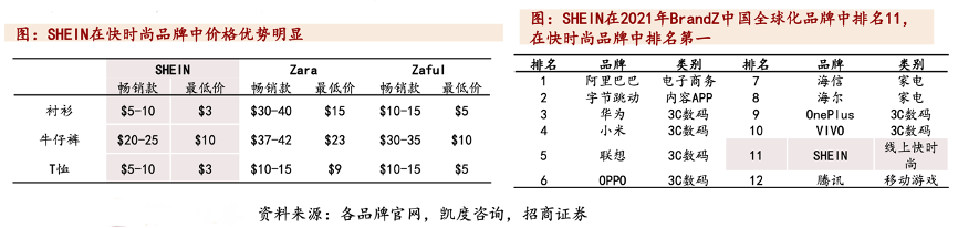 經(jīng)典案例:根據(jù)各品牌官網(wǎng)、凱度咨詢、招商證券等綜合資訊表明,SHEIN低價(jià)優(yōu)勢突出,單件女裝平均價(jià)格為5-15美元(Zara、H&M同類商品價(jià)格通常為30-40 美元);在此基礎(chǔ)上,SHEIN還通過限時(shí)特賣等方式進(jìn)一步凸顯價(jià)格優(yōu)勢,收獲大量年輕中低收入用戶。同時(shí)SHEIN壓中爆款的概率極高,2018年爆款率達(dá)50%、滯銷率僅10%。