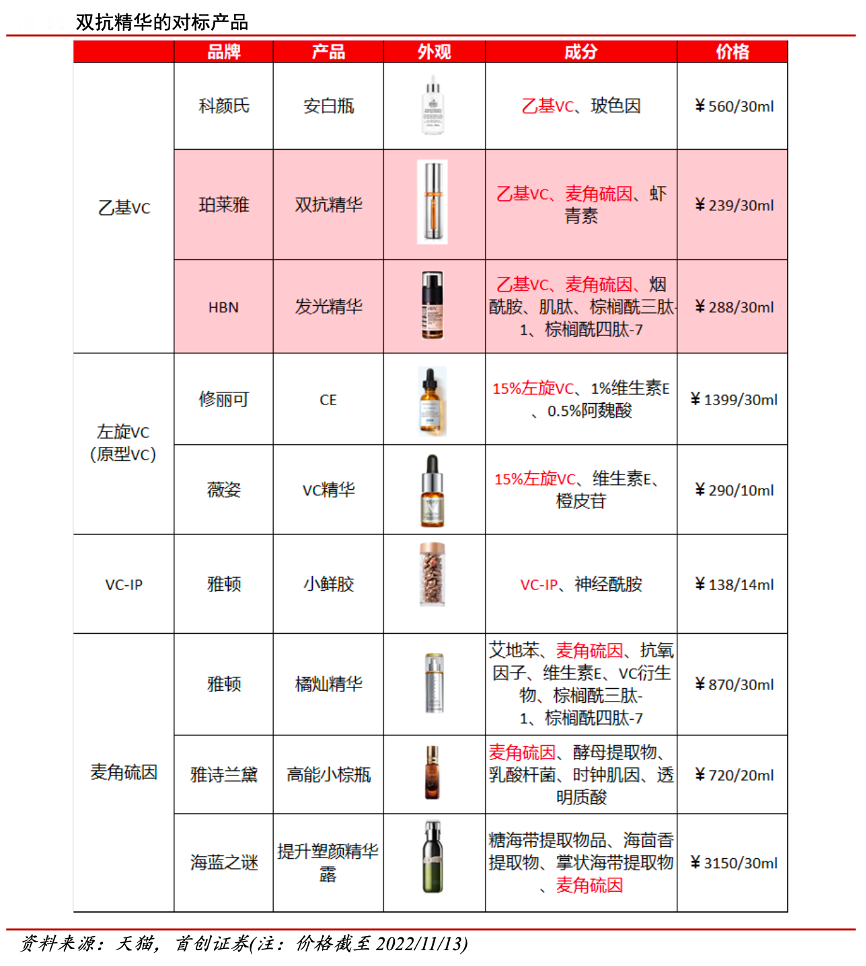 經(jīng)典案例:根據(jù)天貓、首創(chuàng)證券等綜合資訊表明,珀萊雅的雙抗精華通過(guò)麥角硫因、蝦青素、EUK-134 和LIPOCHROMAN molecule 的運(yùn)用來(lái)聯(lián)合抗氧,使用精華艙和保鮮艙進(jìn)行鎖鮮,保持成分的鮮活。在穩(wěn)定肌膚的同時(shí),提亮細(xì)膩,給予消費(fèi)者明顯的肌膚改善。