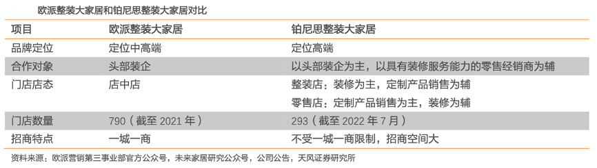 經(jīng)典案例:根據(jù)歐派營銷第三事業(yè)部官方公眾號、未來家居研究公眾號、公司公告、天風(fēng)證券研究所等綜合資訊表明,目前歐派公司整裝大家居實現(xiàn)雙品牌運營分別是“歐派”和“鉑尼思”,持續(xù)推進(jìn)以歐派/鉑尼 思整裝大家居定制產(chǎn)品為核心+供應(yīng)鏈產(chǎn)品整合+雙龍聯(lián)盟產(chǎn)品升級。