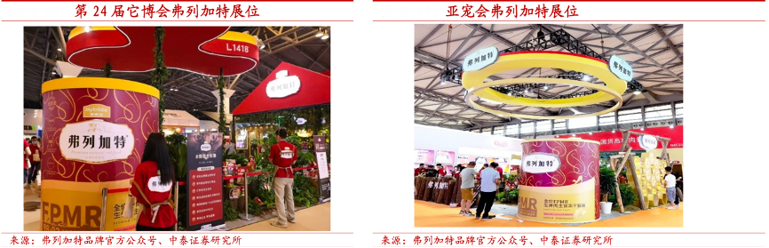 經(jīng)典案例:根據(jù)弗列加特品牌官方公眾號(hào)、中泰證券研究所等綜合資訊表明,乖寶寵物公司在“它博會(huì)”“亞寵會(huì)”等知名寵物展覽中為弗列加特品牌建立獨(dú)立展臺(tái)。為了強(qiáng)化產(chǎn)品的專業(yè)度,弗列加特在展會(huì)上安排研發(fā)人員詳細(xì)為用戶介紹產(chǎn)品營養(yǎng)成分、制作工藝以及相關(guān)技術(shù)專利,不斷強(qiáng)化自身高端貓糧的品牌定位。