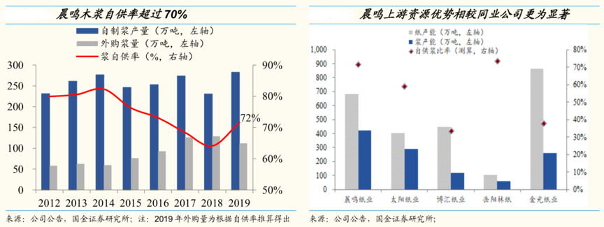 經(jīng)典案例:從公司公告、國(guó)金證券研究所等綜合資訊表明,截至 2020 年底,晨鳴擁有林地面積 85 萬余畝,自制漿產(chǎn)能達(dá)到 430 萬噸,木漿自供率達(dá)到 72%,居于行業(yè)領(lǐng)先地位。