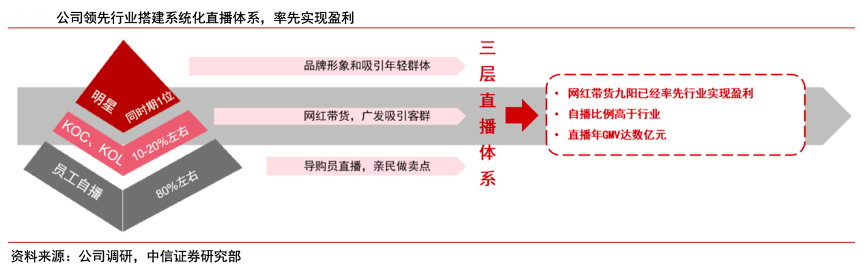 經(jīng)典案例:根據(jù)公司調(diào)研、中信證券研究部等綜合資訊表明,九陽股份公司抓住在線直播的營銷風(fēng)口機(jī)會,拓展更為寬廣的傳插渠道,搭建完成了系統(tǒng)化的公司直播體系,主要由明星網(wǎng)紅、KOL、KOC等組成。在居家防疫期間,公司組織的“宅居免疫大挑戰(zhàn)”活動中,通過線上、線下店鋪的直播、導(dǎo)購員自播等各種形式,創(chuàng)造了億級觀看人數(shù)以上的自媒體傳播影響力。