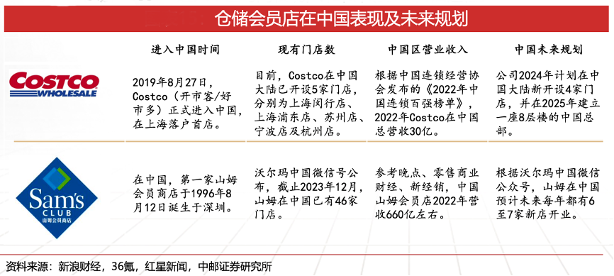 經(jīng)典案例:根據(jù)新浪財(cái)經(jīng)、36氪、紅星新聞、中郵證券研究所等綜合資訊表明,中國(guó)成為倉(cāng)儲(chǔ)會(huì)員店龍頭新增長(zhǎng)極,Costco和山姆紛紛加碼中國(guó)區(qū)布局。山姆于 1996年進(jìn)入中國(guó),發(fā)展至今有46家門店,經(jīng)歷和盒馬的價(jià)格戰(zhàn)后未來(lái)將繼續(xù)加大力度布局中國(guó)市場(chǎng)。