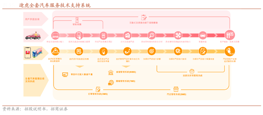 經(jīng)典案例:根據(jù)招股說(shuō)明書、招商證券等綜合資訊表明,途虎致力于實(shí)現(xiàn)全流程統(tǒng)一數(shù)字化管理,建立了中國(guó)最大的汽車服務(wù)門店及技師管理系統(tǒng)—藍(lán)虎系統(tǒng),其圍繞汽車服務(wù)產(chǎn)業(yè)鏈開(kāi)發(fā)出包括零部件匹配大數(shù)據(jù)平臺(tái)、倉(cāng)儲(chǔ)運(yùn)輸管理系統(tǒng)、門店/訂單管理系統(tǒng)、技師支持管理系統(tǒng)等在內(nèi)的全面技術(shù)支持系統(tǒng),從而實(shí)現(xiàn)門店管理、存貨規(guī)劃、供應(yīng)鏈網(wǎng)絡(luò)優(yōu)化等眾多領(lǐng)域的集中決策。