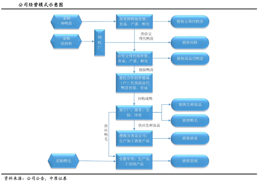 經(jīng)典案例:根據(jù)公司公告、中原證券等綜合資訊表明,華英農(nóng)業(yè)在成鴨屠宰環(huán)節(jié),其總部加工廠按照約定回購(gòu)合作的養(yǎng)殖場(chǎng)(戶)育成的合格商品成鴨,經(jīng)屠宰加工制成凍品及生鮮制品。凍品及生鮮制品一部分自用,做熟食生產(chǎn)原料;另一部分通過(guò)經(jīng)銷商或直接銷往終端客戶。同時(shí),公司擁有中亞、東南亞、中東、香港等多個(gè)國(guó)家及地區(qū)凍品制品的出口資格,根據(jù)市場(chǎng)行情向境外客戶直接銷售。