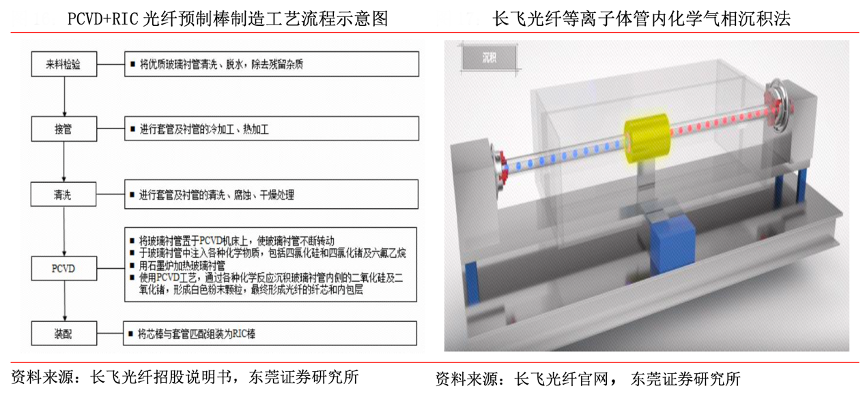 經(jīng)典案例:根據(jù)長飛光纖招股說明書、東莞證券研究所等綜合資訊表明,長飛光纖是國內(nèi)第一家擁有光纖預(yù)制棒生產(chǎn)能力的企業(yè),同時也是行業(yè)內(nèi)為數(shù)不多的可以同時通過 PCVD 工藝和 VAD+OVD 工藝進行光纖預(yù)制棒生產(chǎn)的企業(yè)之一,公司掌握的“PCVD+RIC”光纖預(yù)制棒生產(chǎn)技術(shù)處于世界領(lǐng)先水平,能夠?qū)饫w的折射率剖面進行精確控制。