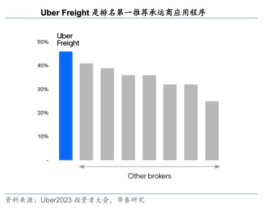 經(jīng)典案例:根據(jù)Uber2023投資者大會(huì)、華泰研究等綜合資訊表明,Uber Freight 平臺(tái)擁 有超過(guò) 100 萬(wàn)司機(jī),相較 2019 年翻了一倍,越來(lái)越多的個(gè)體駕駛員及小型車隊(duì)愿意加入 Uber Freight 平臺(tái),利用其高效的匹配機(jī)制和穩(wěn)定的訂單流來(lái)提高收入和運(yùn)營(yíng)效率。