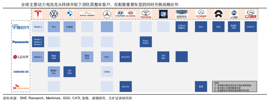 經(jīng)典案例:根據(jù)SNE Research、Marklines、GGII、CATL官微、真鋰研究及五礦證券研究所等綜合資訊表明,聚焦國內(nèi)動(dòng)力電池市場,已呈現(xiàn)“全球競爭,強(qiáng)者恒強(qiáng),多元機(jī)遇”的特征。其中,LG化學(xué)利用在高鎳領(lǐng)域的優(yōu)勢以及配套特斯拉 Model 3 等重點(diǎn)車型,2020 年在中國市場打下舉足輕重的份額(1-9 月市占率約 14%),而寧德時(shí)代、比亞迪等中國本土的動(dòng)力電池領(lǐng)軍企業(yè)也勢頭不減,2021年將加速擴(kuò)張。同時(shí),在政策與終端需求的指引下,例如功率型、快充型電 池等細(xì)分產(chǎn)品也迎來需求機(jī)遇,產(chǎn)品體系的多元將帶來更多差 異化的機(jī)會(huì)。