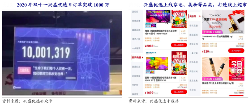 經(jīng)典案例:從興盛優(yōu)選公眾號、興盛優(yōu)選小程序、開源證券研究所等綜合資訊表明,興盛優(yōu)選專注下沉市場布局,其日均訂單超 800 萬單,客單價維持在 20 元左右。2020 年雙十一當天截至晚上 8 點,公司訂單量突破 1000 萬,全天訂單量突破 1200 萬。其充分發(fā)揮生鮮剛需品的引流作用,積極上線美妝、數(shù)碼、家紡等高毛利產(chǎn)品,打造家庭場景化消費平臺的同時助力公司盈利能力提升。