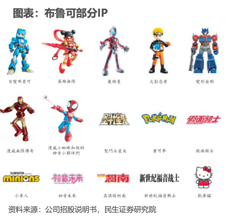 經(jīng)典案例:根據(jù)公司招股說明書、民生證券研究院等綜合資訊表明,自成立之初,布魯可已通過自有及授權(quán)積累了豐富的IP矩陣。成功打造自有IP并商業(yè)化自有IP和授權(quán)IP的出色業(yè)績,使布魯可成為IP版 權(quán)方優(yōu)選的合作伙伴。布魯可的IP數(shù)量從2021年12月31日的9個增加至超過30個。