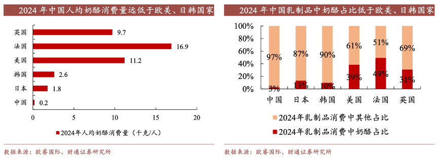 經(jīng)典案例:根據(jù)歐睿國際、財(cái)通證券研究所等綜合資訊表明,與歐美國家相比,盡管奶酪并非中國人飲食結(jié)構(gòu)中的必需品,但在奶酪行業(yè)本土化探索的推動下,隨著我國居民健康意識的提升與對西式飲食需求的增加,長期而言我國奶酪行業(yè)市場規(guī)模仍有廣闊的增長空間。