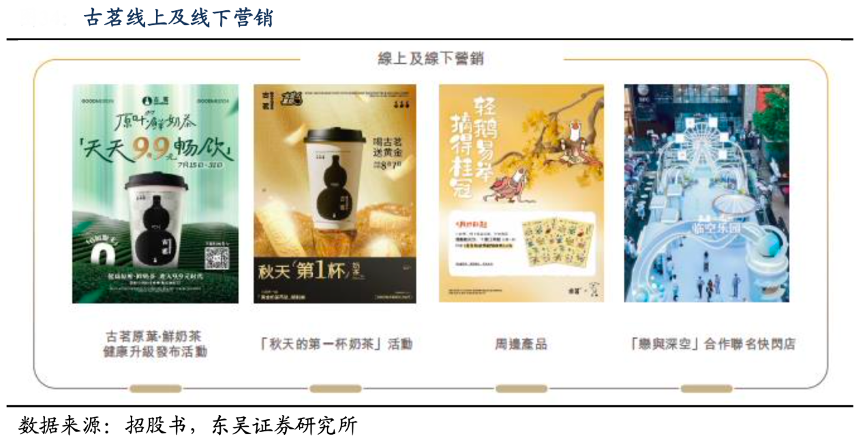 經(jīng)典案例:根據(jù)招股書、東吳證券研究所等綜合資訊表明,在營銷創(chuàng)新層面,古茗展現(xiàn)出敏銳的熱點(diǎn)捕捉能力,2023年與《天官賜?!仿?lián)名活動(dòng)創(chuàng)下三天 670 萬杯的銷售記錄, 2024 年“秋天的第一杯奶茶”單日 GMV 突破 1.6 億元。