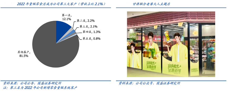 經(jīng)典案例:根據(jù)公司公告、公司公眾號、國盛證券研究所等綜合資訊表明,甘源量販零食系統(tǒng)自 21H2 進(jìn)入快速發(fā)展階段,甘源于 2022 年擁抱量販零食系統(tǒng),從頭部零食很忙、零食有鳴、趙一鳴等合作逐步拓展腰部、尾部系統(tǒng)合作,以量販自身展店+SKU 迭代實(shí)現(xiàn)快速發(fā)展,2024年量販零食店已占甘源 20%以上營收比重。