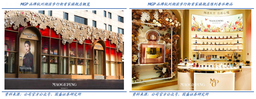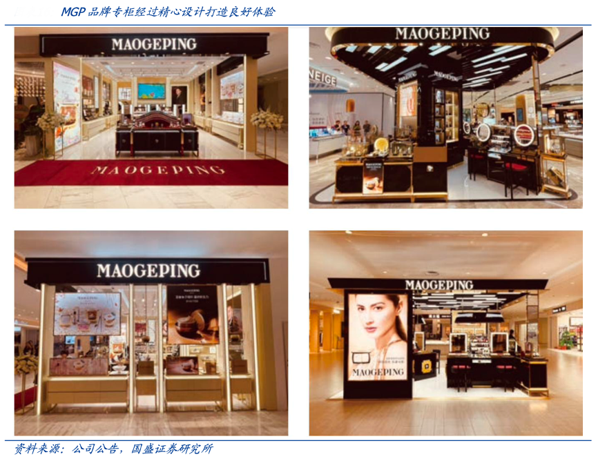 經(jīng)典案例:根據(jù)公司公告、國盛證券研究所等綜合資訊表明,MGP品牌的專柜基本位于中高端商場,專柜的裝潢經(jīng)過精心設(shè)計,配備的專業(yè)員工可為消費者提供個性化咨詢及專業(yè)試妝服務(wù),打造沉浸式及個性化的購物體驗。
